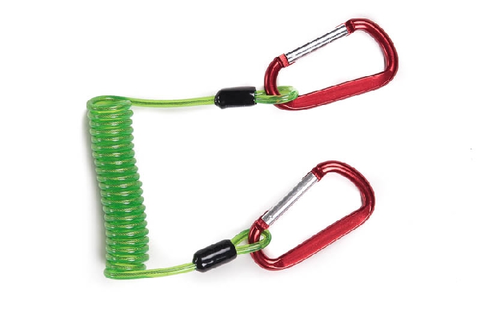 Multipurpose lanyard, coiled in design to avoid tangling. Supplied fitted with carbine clips on each end to allow easy attachment to tools and equipment.
