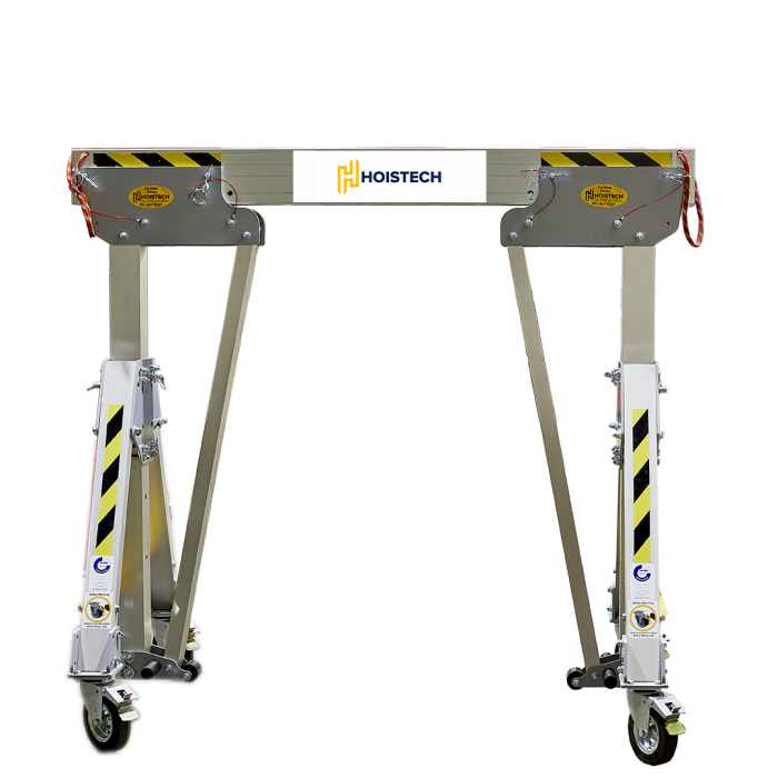 Our super-light aluminium portable gantry ranges from 1.6m to 5.4m in height with beam lengths of 2m to 7m and safe working loads of 1.5T to 3.5T.
