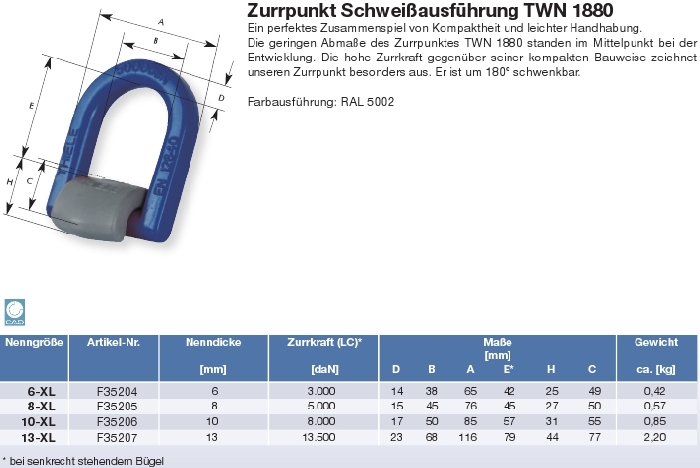 Home »Rigging Equipment » Cargo Lashing Points » G10 1.35 TONNE THIELE WELD ON LASHING POINT